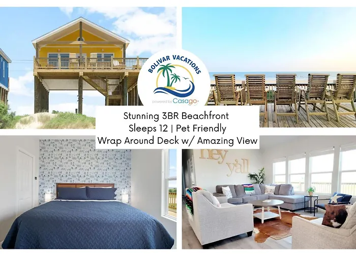 Set along the pristine coastline, the Yellow Rose! Stunning Beachfront 3Br W Wrap Around Deck & Amazing Views in Gilchrist offers an idyllic getaway for families and friends.